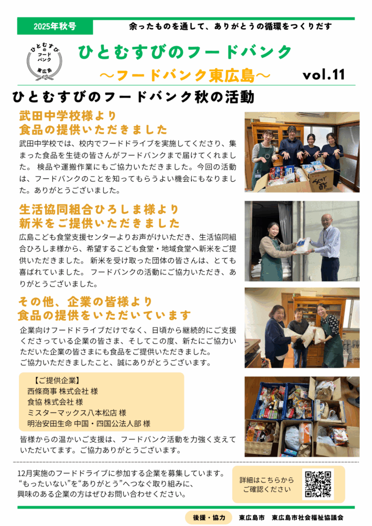 フードバンクでは活動に協賛、または食品を提供してくださる企業・団体を募集しております。